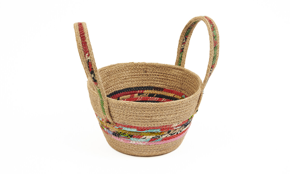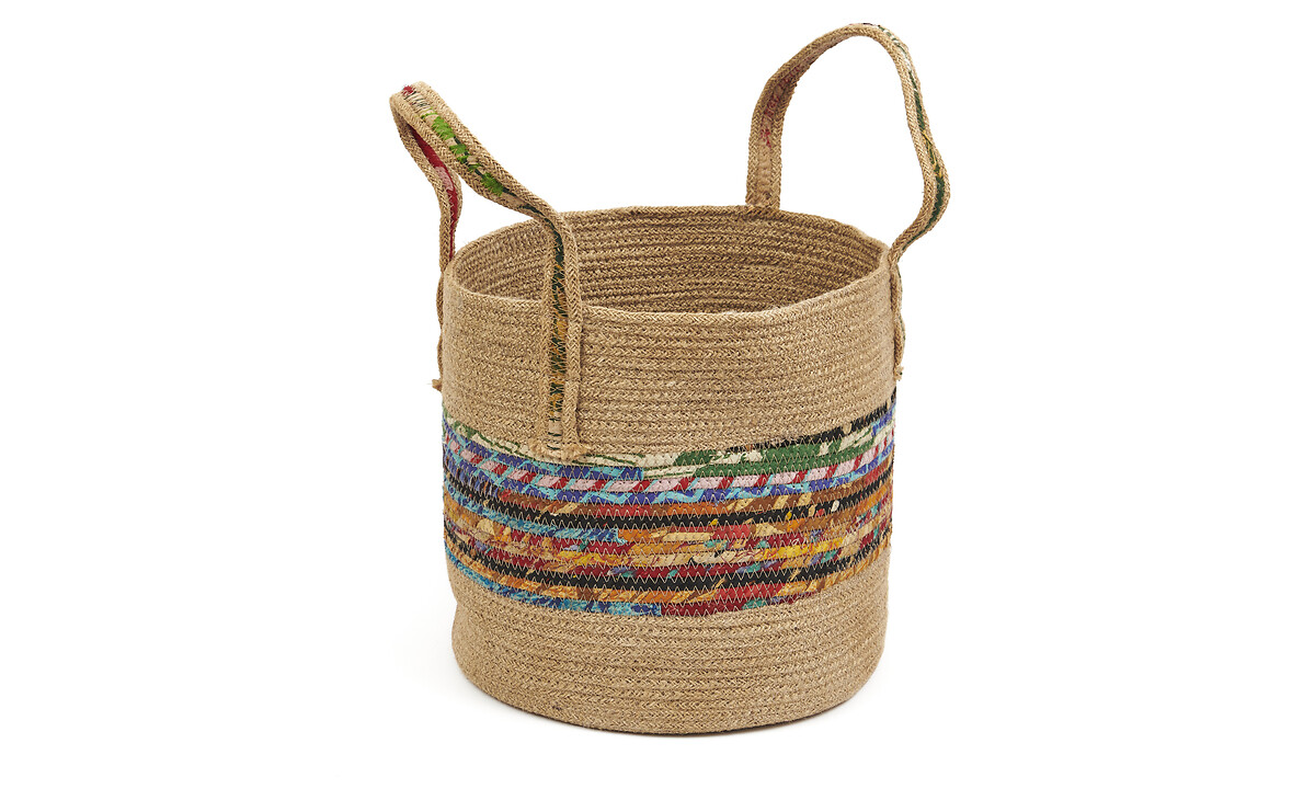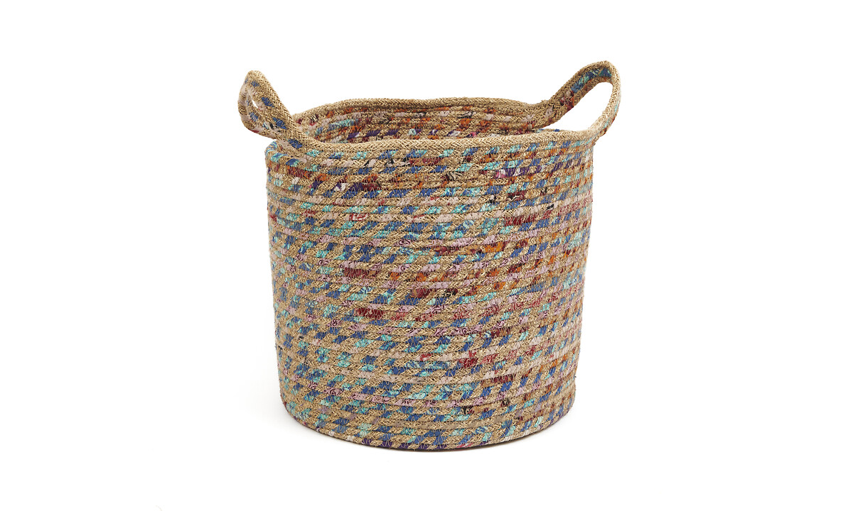 Mand met handvat jute & gerecycleerde sari rond M