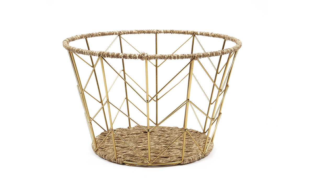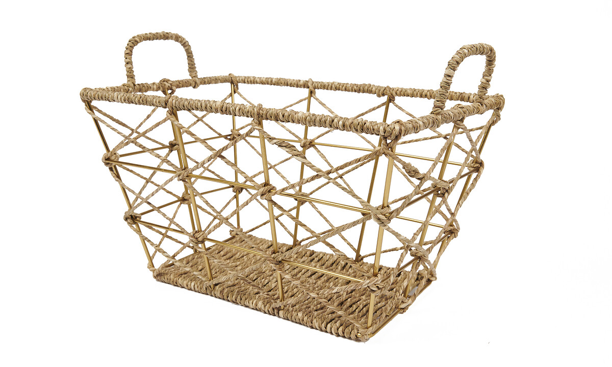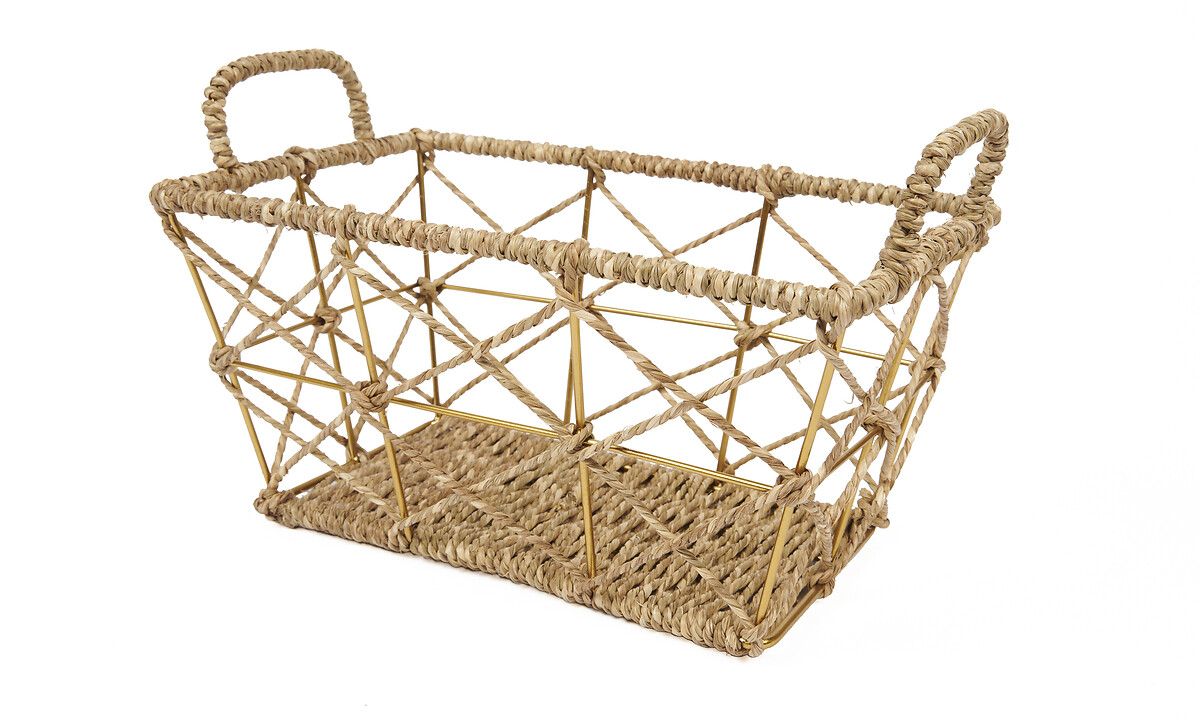 Mand met handvat ijzer &gras rechthoek open